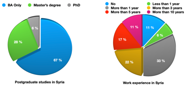 - The majority of respondents have only completed a BA in Syria with more than one year of work experience before migrating.